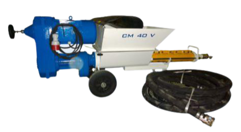 Рама растворонасоса СМ 40 vario 2L6 выполнена в виде воронки, которая оснащена двумя колесами, что обеспечивает легкую манипуляцию установкой даже в тесных помещениях.